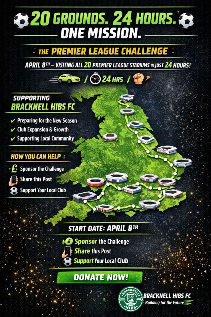 Chairman Mitch Noble, Keith Gale and Ed Garde will begin the challenge of visiting every premier league stadium in a 24 hour period. All to raise funds for the ongoing development of the club.