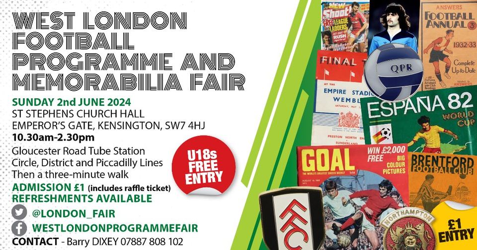 PPS Don’t forget ….Sunday The West London Football Programme and Badge Fair. Sunday 2nd June 2024. Details above.