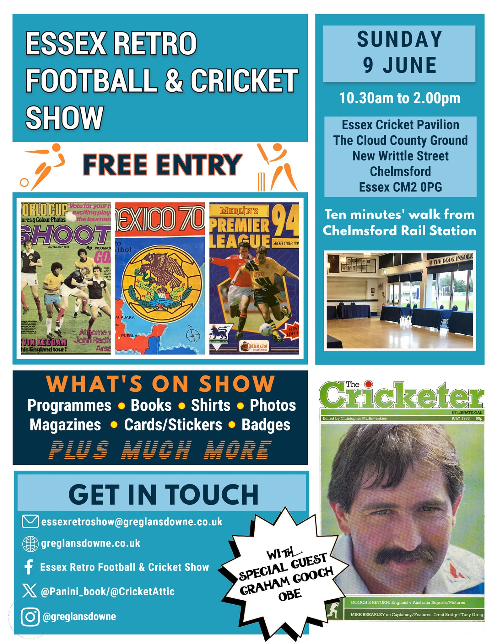 “With just a few days to go until the Essex Retro Football & Cricket Show, I wanted to confirm a few of the key details: