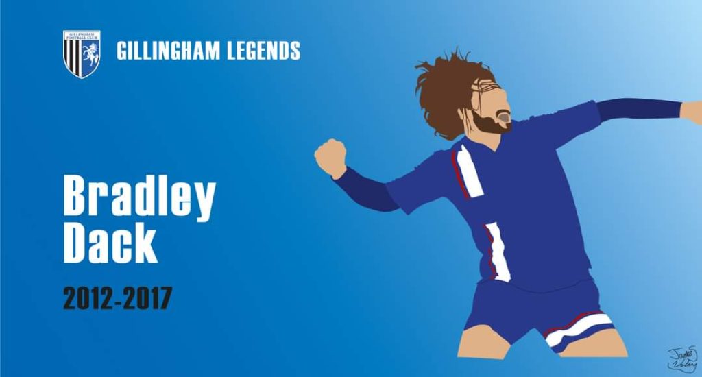 Whilst Aidan might not have been there “that day” he does remember one of my great heroes, a certain Bradley Dack who was/is a TRUE legend at Gillingham. Bradley is without doubt one of my very favourite players of all times and I was broken when he was sold to Blackburn Rovers. I even went to West Ham United v Blackburn Rovers in the cup last season just to see him …. and he did not disappoint! Since then he has moved on again and is currently at Sunderland in the Championship although it has not been an altogether happy time there. He’s always welcome back at the Priestfield ….preferably in our colours!