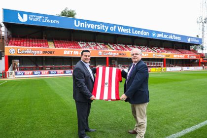 Fundamental to the new community-focused collaboration which UWL and Brentford FC have agreed is delivering educational programmes that help forge bonds between the Club and students, associated businesses and local organisations in Ealing and Hounslow boroughs. Valuable work placements for undergraduates and opportunities to take part in matchdays at Griffin Park are just two possible joint projects.