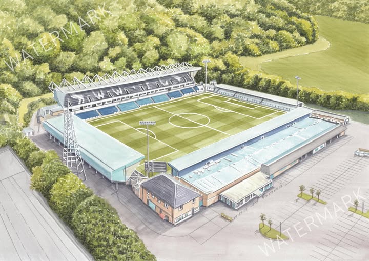 So, here we have for example Lords Cricket Ground (above), Everton’s new stadium and a new Villa Park. (New watercolour and not new built stadium to confirm!) I thought Wycombe’s Adams Park was especially impressive.