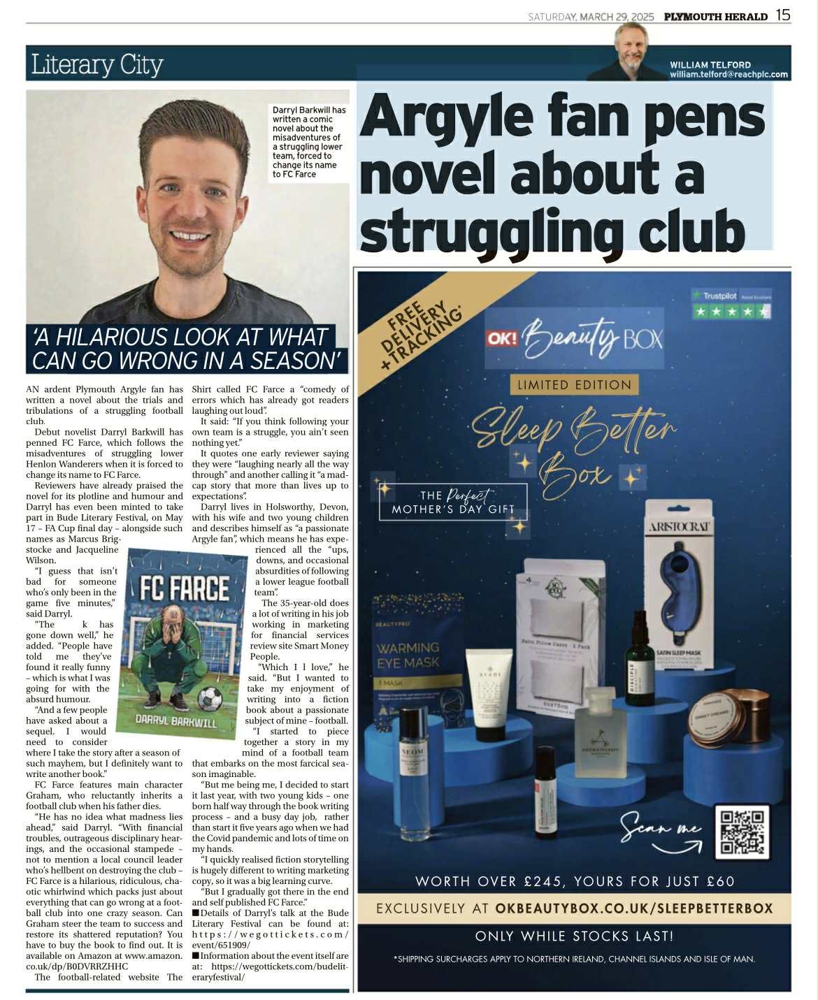 The story was picked up by the Plymouth Herald and Darryl kindly name checked me. Thanks.