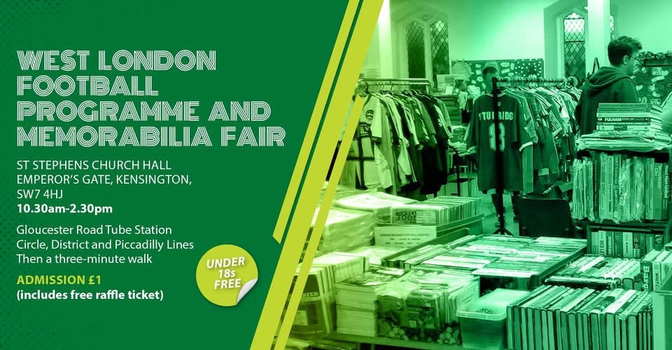 Yesterday was the bi-monthly programme fair which as usual was a very interesting and professional affair. Today the organiser, Barry Dixey mailed me, “Announcing a SOUTH LONDON Programme and Memorabilia Fair at TOOTING & MITCHAM FC on SUNDAY, 4th MAY 2025.