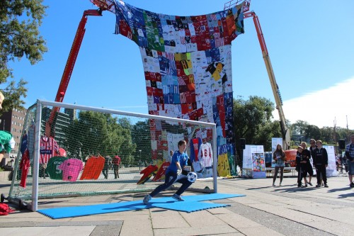 So, this is it. What the last two and a half years have been about – this is the Shirt in all its glory in Oslo. As you can see it take two cranes to lift it now. If your shirt is there – THANKS. If your shirt is not there – PLEASE get in touch.