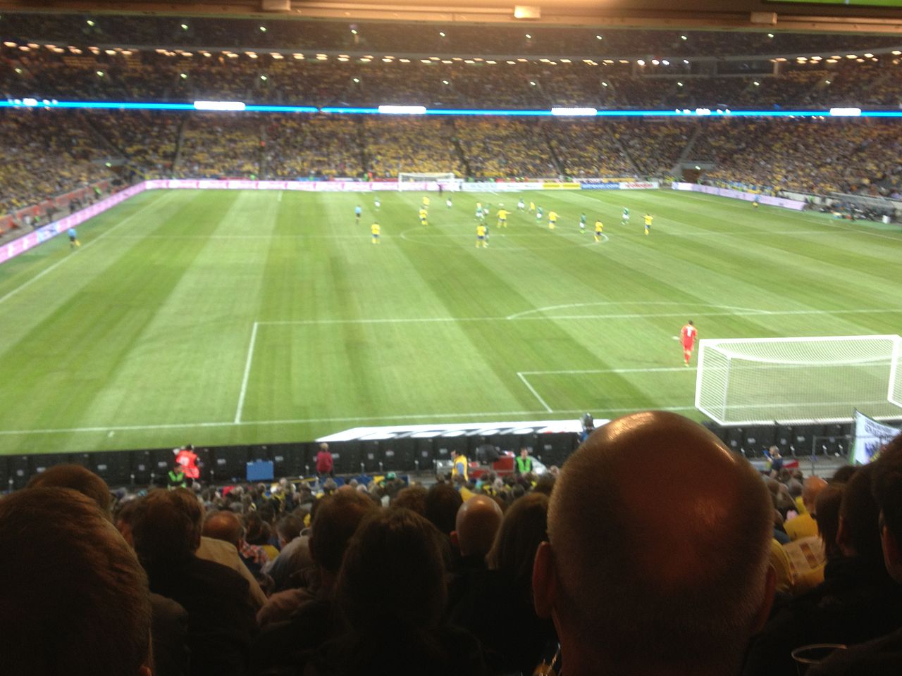 Some of you will know that I speak Swedish. Some of you will know that I have spent much of my life in the Land of ABBA and Pippy Longstocking. It was a pleasure to return recently and my friend Mats from Idrottsplats was kind enough to recommend a few grounds to visit. Stockholm in the sun is truly the most beautiful place on earth (apart from the Priestfield Stadium, of course.) I was blessed with absolutely perfect weather as I strolled around the capital after a ferry from Estonia. The Swedish season avoids the worst of their winter so there were top two division games to see whilst the amateurs have a mid-season break and I asked Mats for recommendations. It boiled down to the National Stadium at Solna or Brommapojkarna just up the road. Sadly, I could not catch both so he recommended AIK at the Friends Arena. It’s a VERY impressive stadium with excellent communication links. It would remind anyone of the London Arena – it even has its won Westfield immediately opposite the arena! Excellent security, “reasonably acceptable” food and drink prices and £12 for a great seat. Sadly no programme or similar. Tragically an absolutely appalling game where the locals AIK were easily beaten by an average BKH, Bollklubben Häcken who surprisingly are towards the very top of the table. AIK look relegation fodder. Respect to the home fans who have only seen their team win once at home all season in the league. They kept singing all afternoon in the bright sunshine more associated with Santorini than Stockholm!