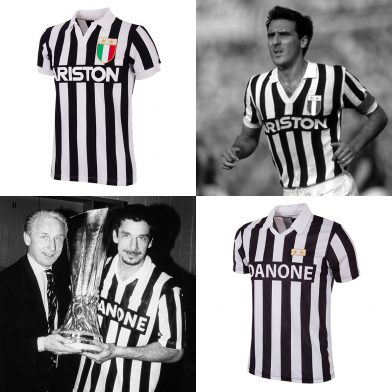 We go back to the 1952 scudetto when the Dane, John Hansen, became Serie A topscorer with 30 goals. We also celebrate their first major European title, the UEFA Cup in 1977, with the home and away shirt of that season. During the 1983 – 84 season Platini guided Juve to their 21st scudetto and won the European Cup Winners Cup in a distinctive yellow jersey. The collection is completed with two classic retro jackets and a ‘My First Juventus Shirt’ for the youngest fans.