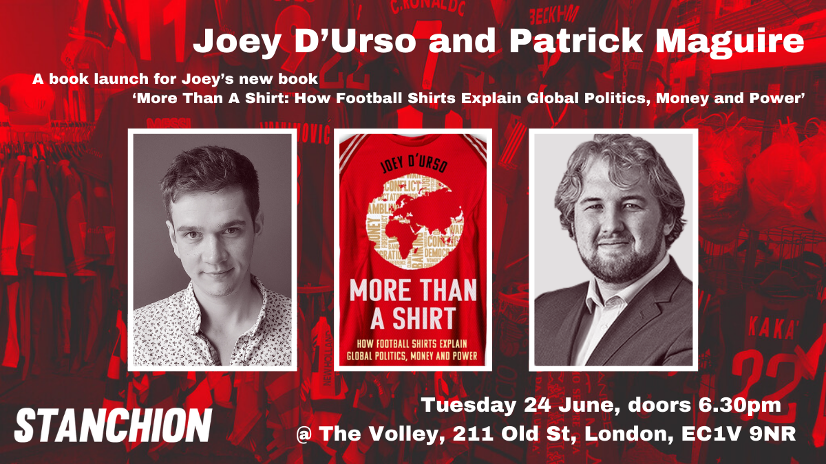 Join Stanchion Books for the launch of Joey D’Urso’s new book More Than A Shirt: How Football Shirts Explain Global Politics, Money and PowerJoey will be in conversation with Patrick Maguire.