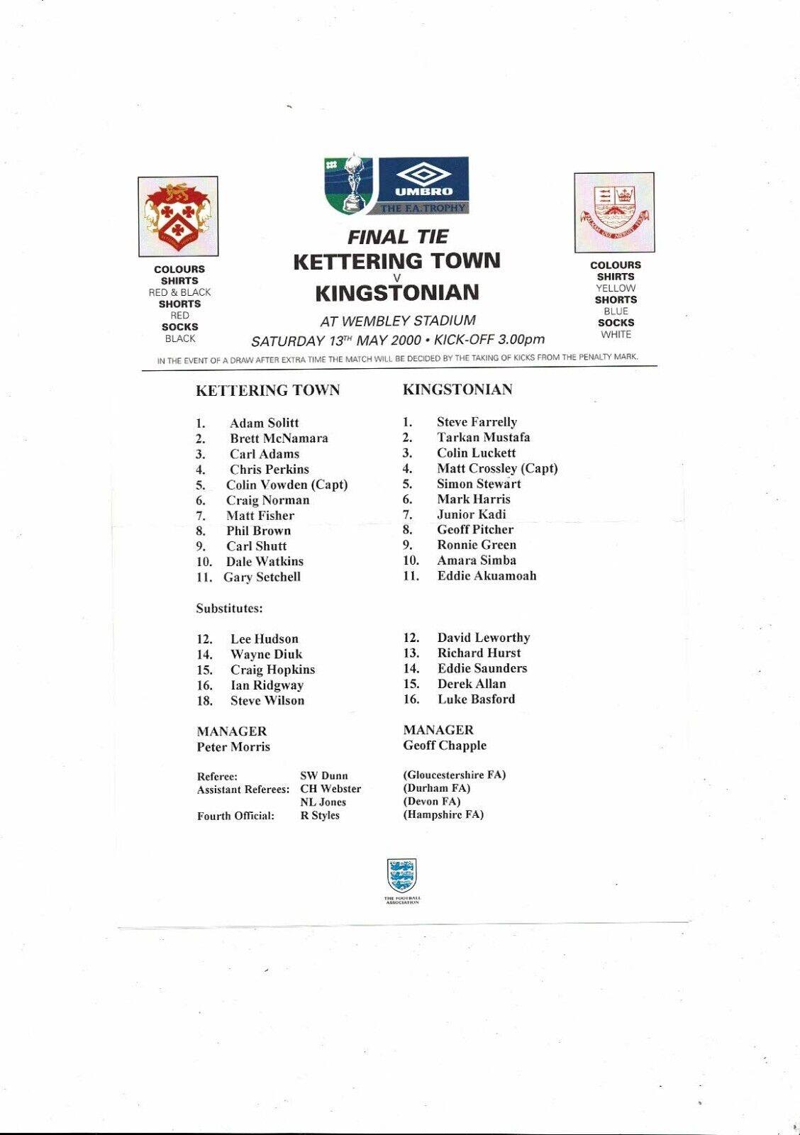 KETTERING TOWN AT WEMBLEY 2000 – HIGHLIGHTS v KINGSTONIAN