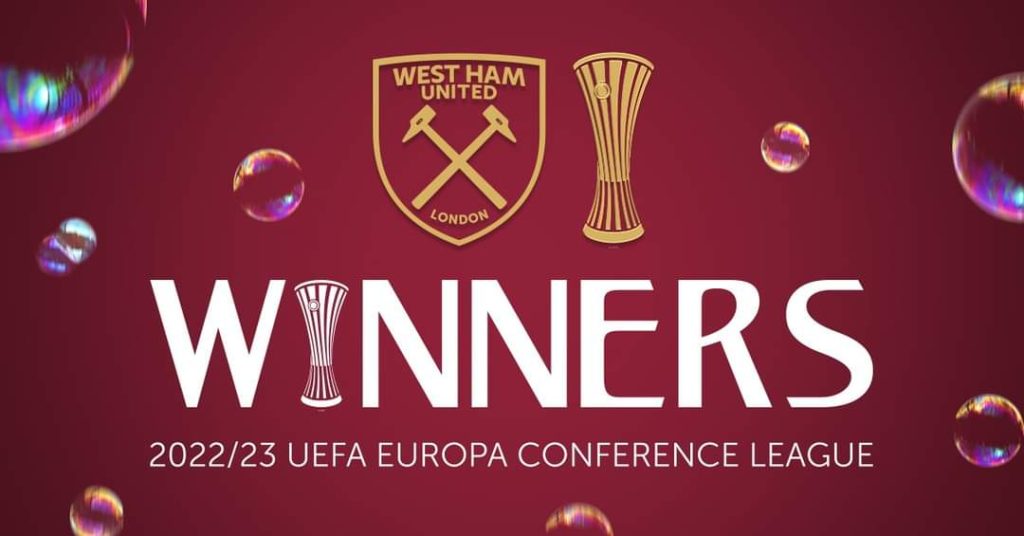 An unforgettable night culminated with a 90th minute winner from Bowen after Benrahma’s penalty had been equalised by Bonaventura. So, eleven wins in the league but twelve in the Conference League and the trophy will hold pride of place at the London Stadium for the next twelve months. Sadly, the Hammers won’t be able to defend it because their victory means that they will play in the Europa League, next season. Yay!